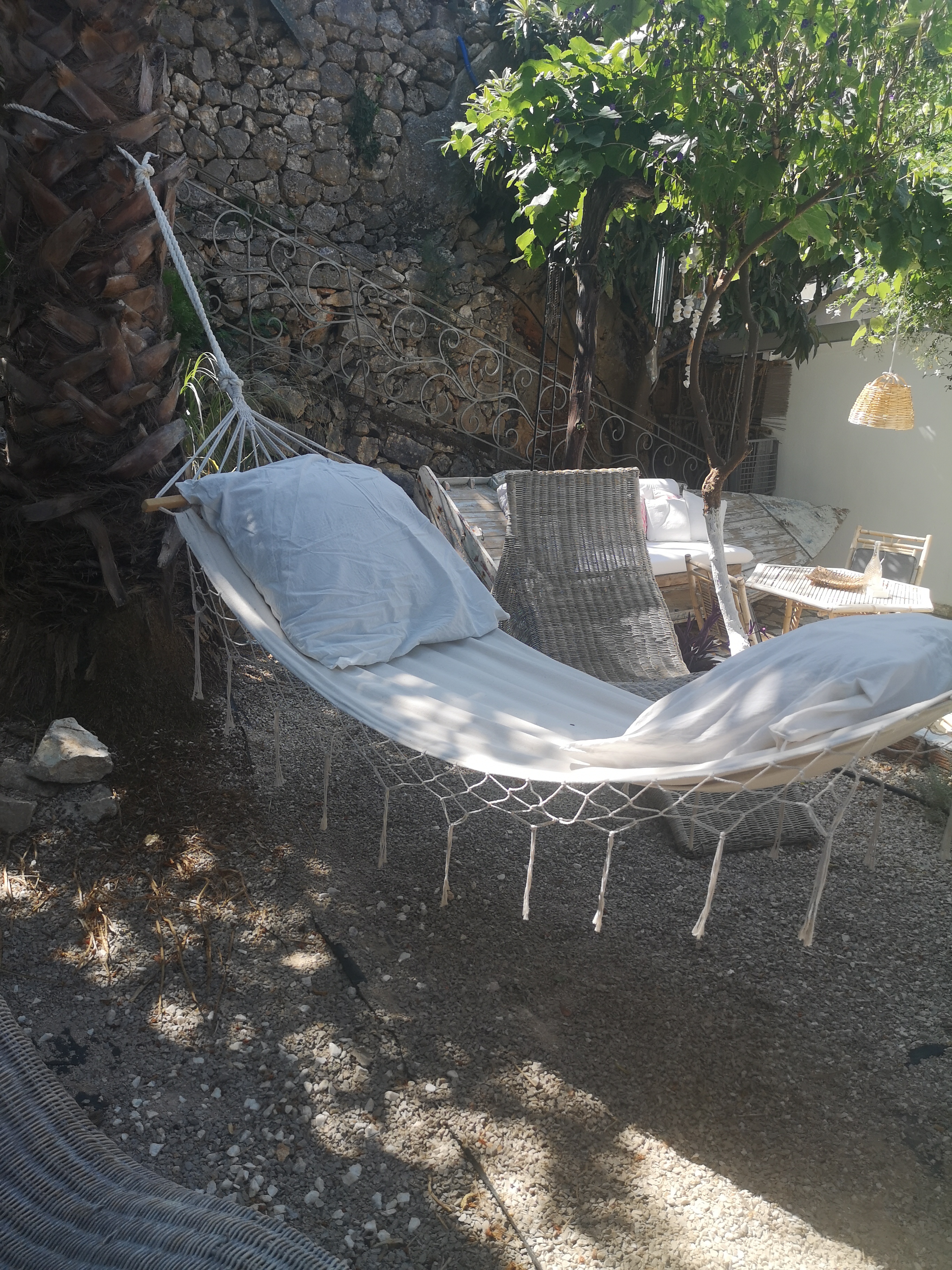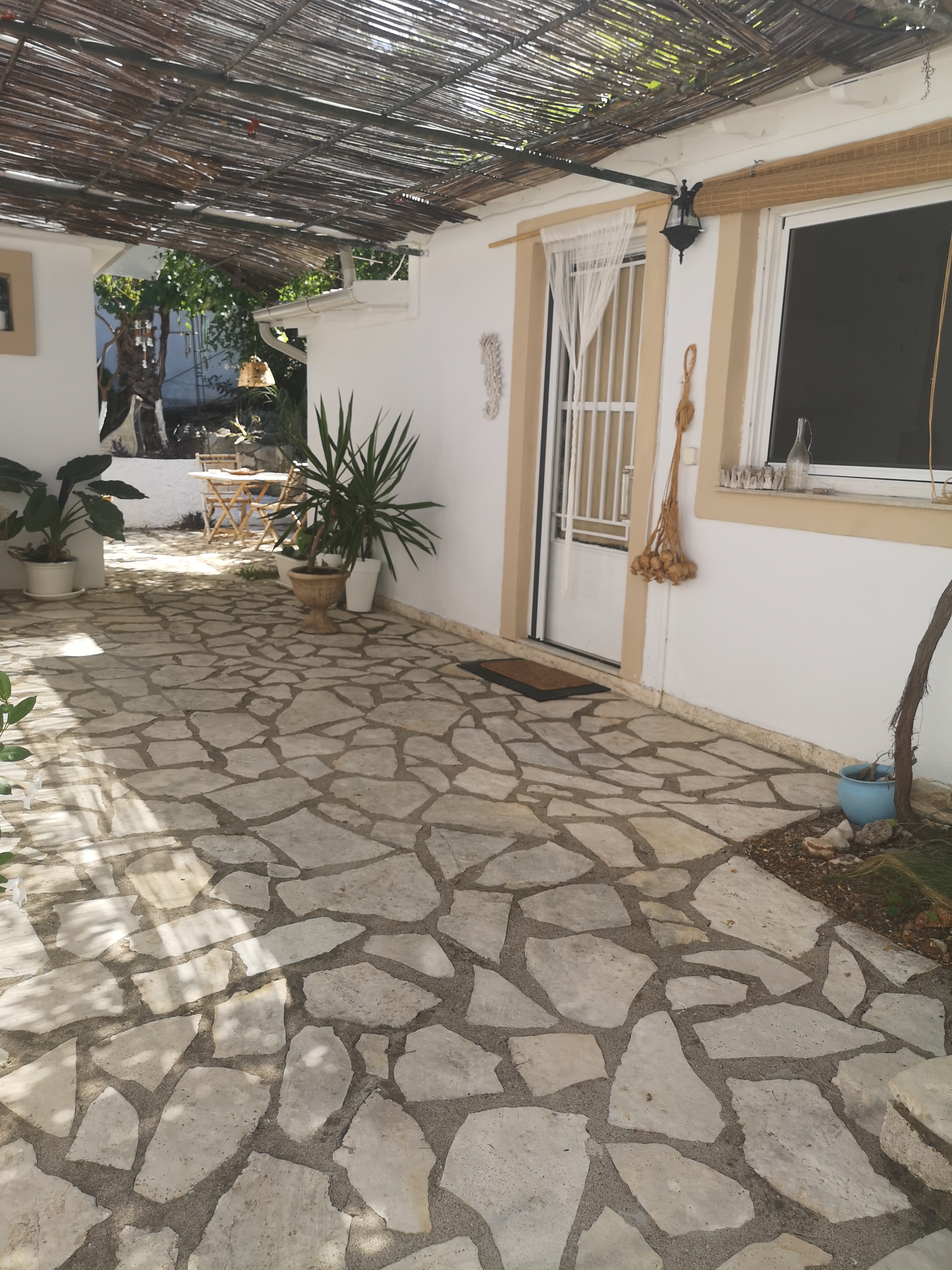 Locale climatizzato e servito da pale ad aria all'interno. Monolocale con letto matrimoniale la zona cucina e' dotata di frigo, piani elettrici ed allestita completamente per servire 2 persone 1 bagno con finestra. 1 patio con tavolo e sedie, 1barca divano. Pulizia della casa settimanale, cambio lenzuola e asciugamani. L'arredamento e' tutto rinnovato.. Lenzuola e asciugamani sono forniti dalla casa.